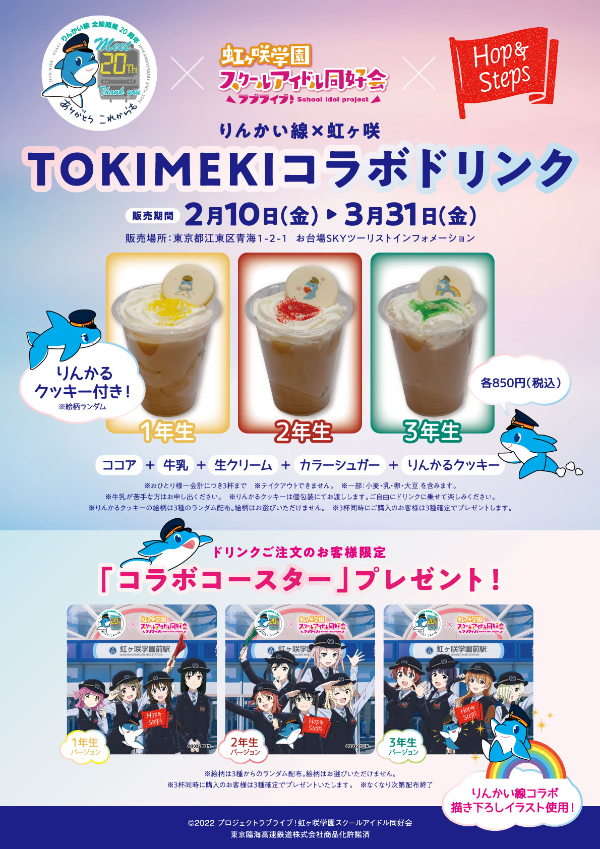 「りんかい線×虹ヶ咲 TOKIMEKIコラボドリンク」3種