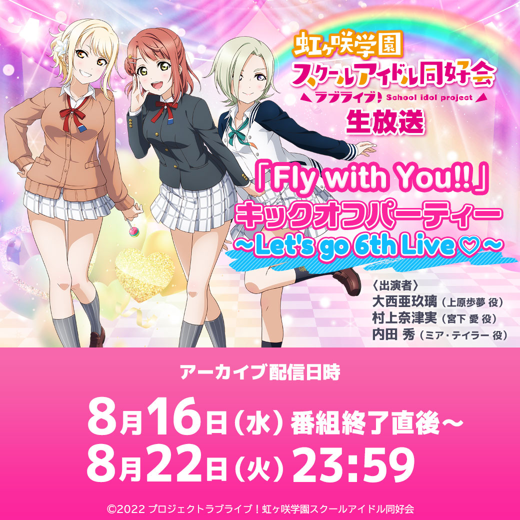 『ラブライブ!虹ヶ咲学園スクールアイドル同好会生放送 スクフェス2&ニジガクラブソング 最新ニュースがてんこもり!にじちゃん情報局♪』アーカイブ配信決定!