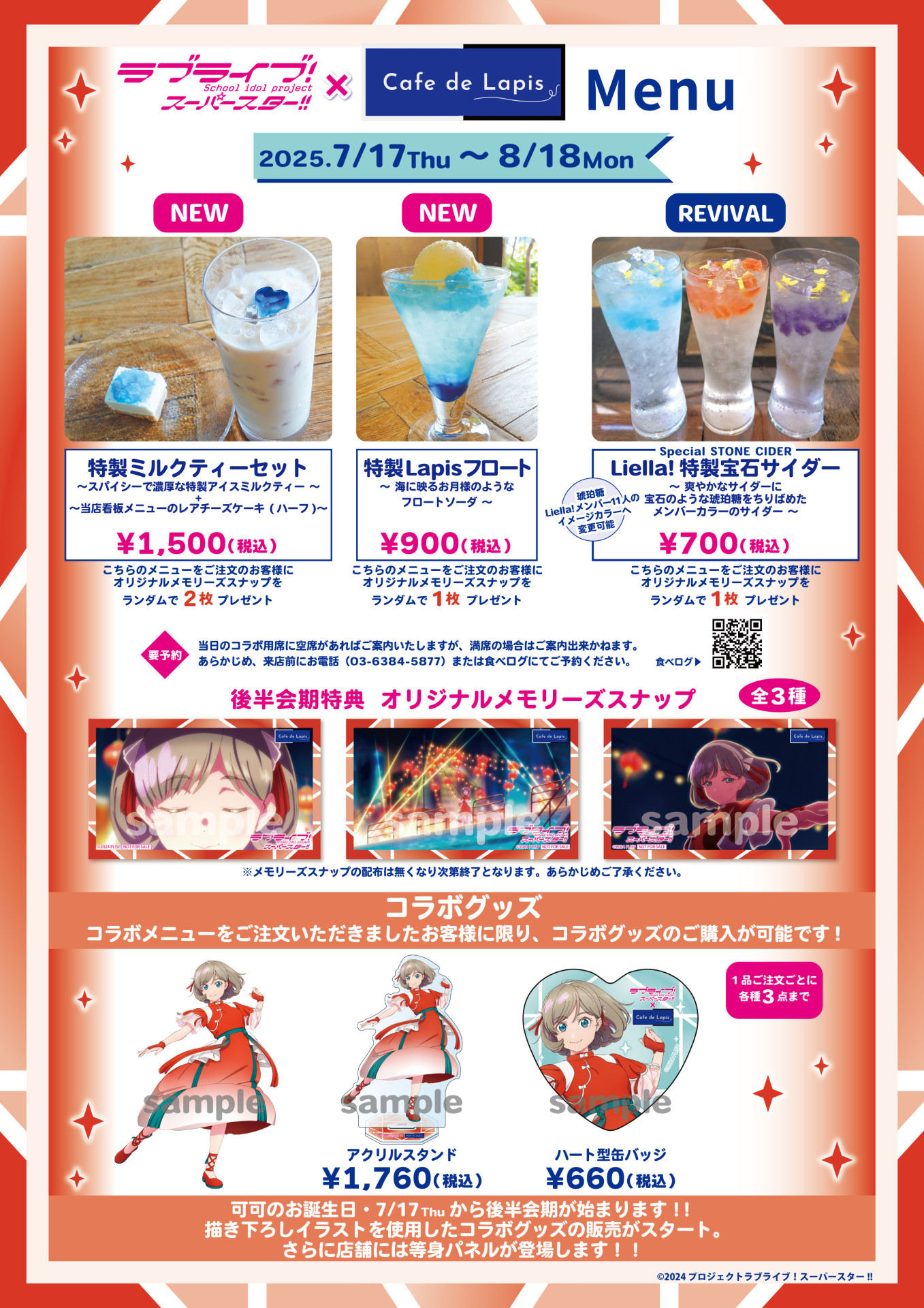 店内満席時はお待ちいただくか、③Liella!特製宝石サイダーにつきましてはテイクアウトでも提供させていただきます。